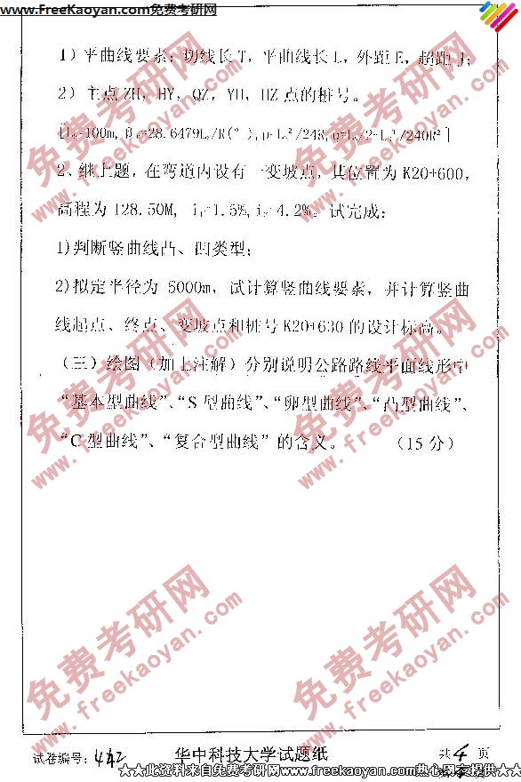 华中科技大学2007年半岛在线注册真题-道路规划与勘测设计(4)