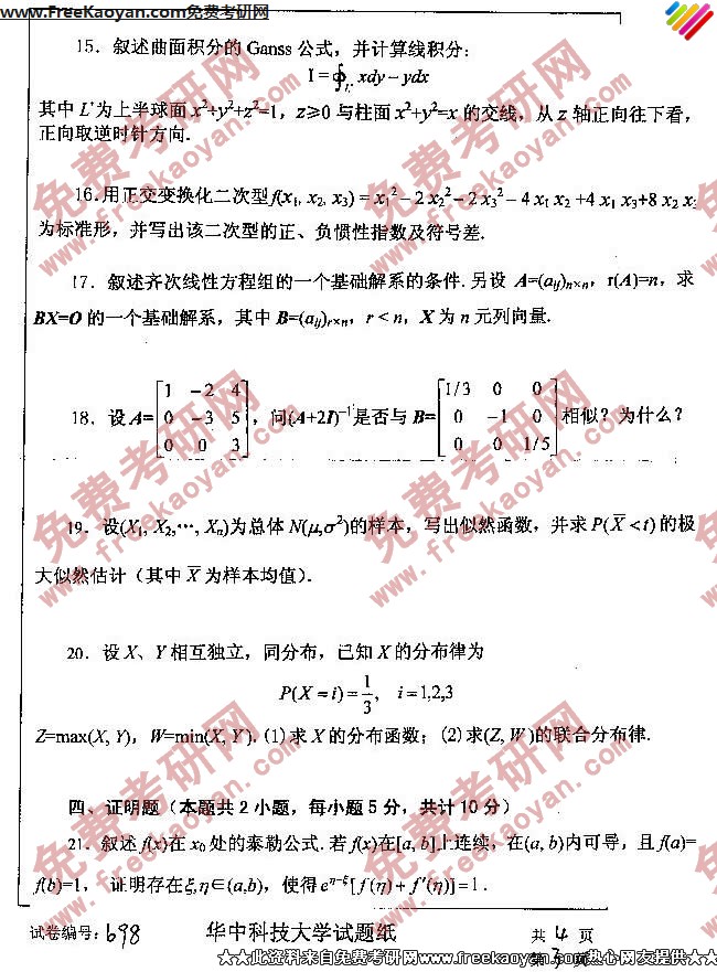 相关话题/半岛在线注册真题 数学 华中科技大学 理工类