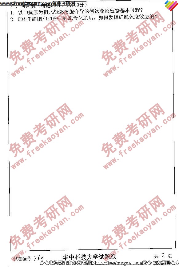 华中科技大学2007年半岛在线注册真题-医学免疫学(单考)(2)