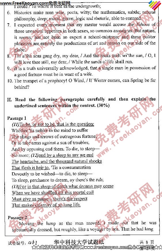 华中科技大学2007年半岛在线注册真题-英语专业综合(2)