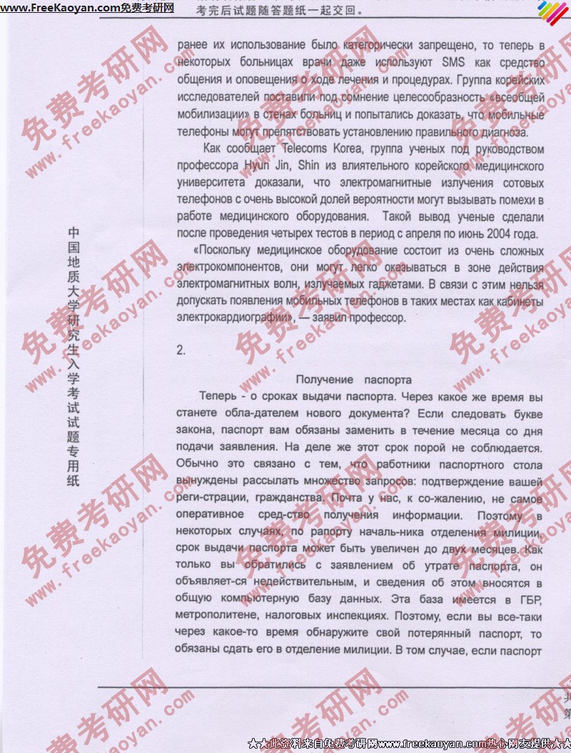 中国地质大学(武汉)2007年半岛在线注册真题-俄语写译(3)