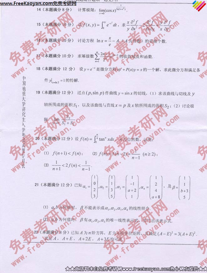 相关话题/中国地质大学 半岛在线注册真题 高等数学