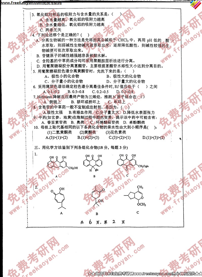 上海交通大学2006年半岛在线注册真题-天然药物化学(2)