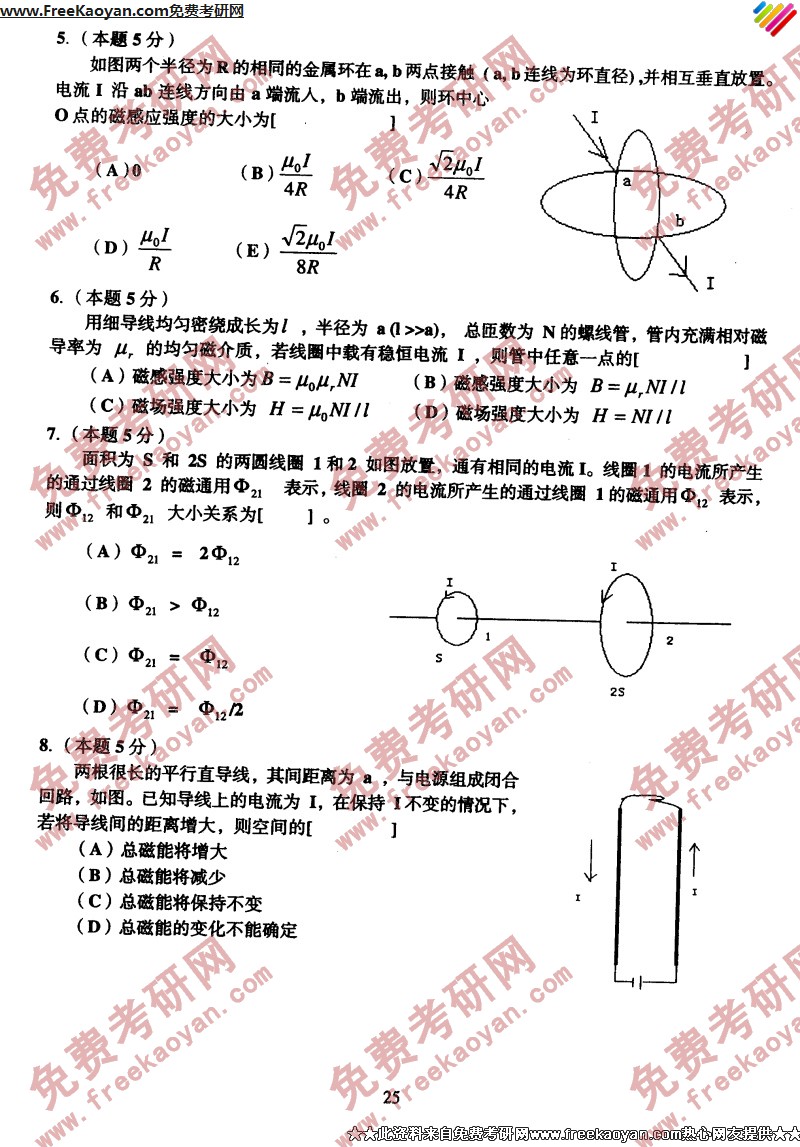 中国传媒大学2005年半岛在线注册真题-电磁学(2)