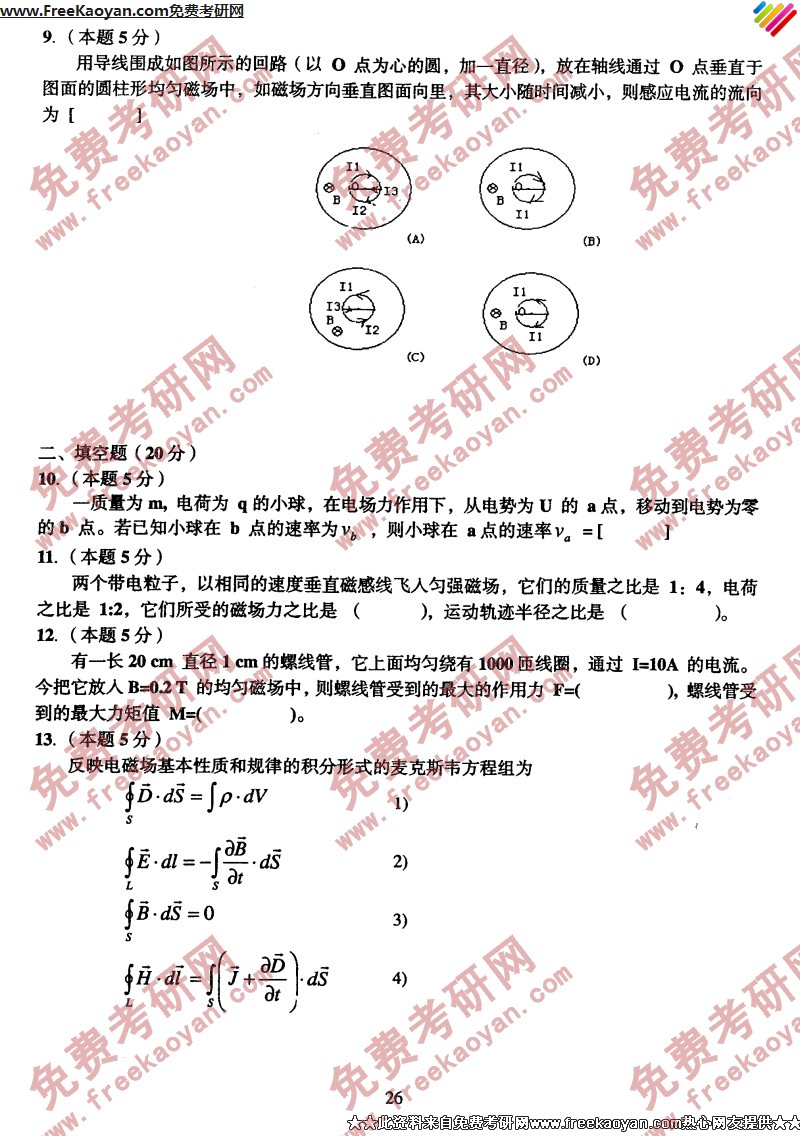 中国传媒大学2005年半岛在线注册真题-电磁学(3)