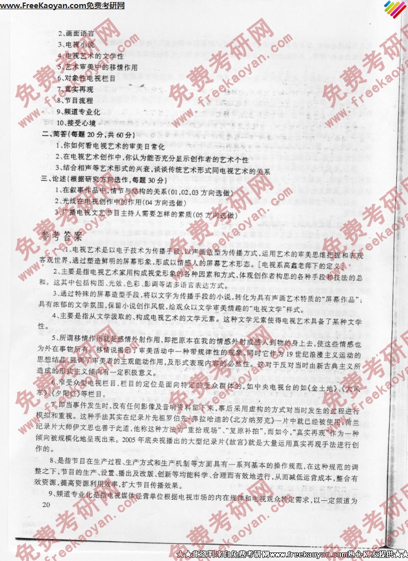 专业课半岛在线注册经验 本站小编 FreeKaoyan 2018-01-23中国传媒大学2006年半岛在线注册真题-电视文化传播