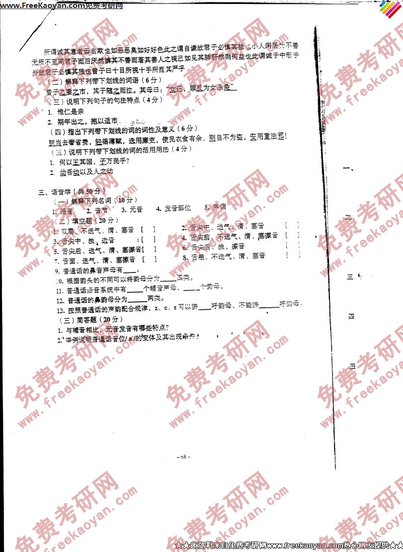 专业课半岛在线注册经验 本站小编 FreeKaoyan 2018-01-23中国传媒大学2006年半岛在线注册真题-语言学理论