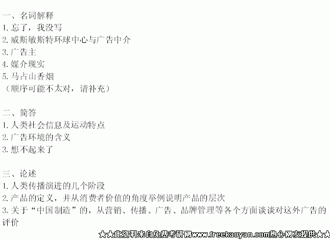 中国传媒大学2010年709广告传播理论半岛在线注册试题(回忆版)(2)