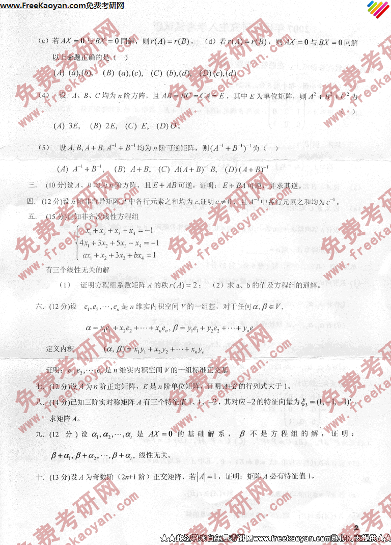 燕山大学2007年半岛在线注册真题-高等代数(2)