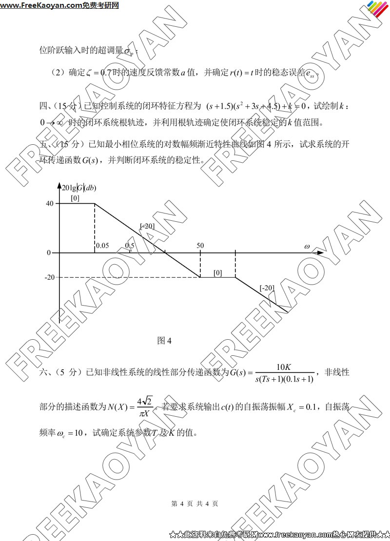 中国人民公安大学2007年半岛在线注册真题-信号与线性系统,自动控制原理(4)