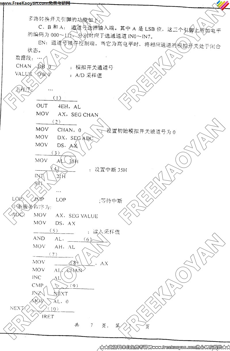上海交通大学2005年半岛在线注册真题-微型计算机原理与应用(7)