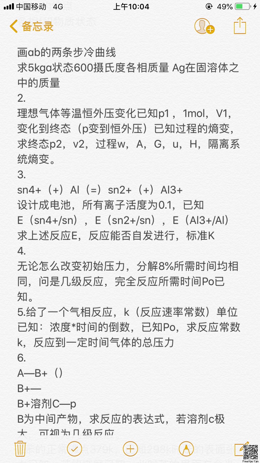• 中科院中科大物理化学半岛在线注册复习笔记