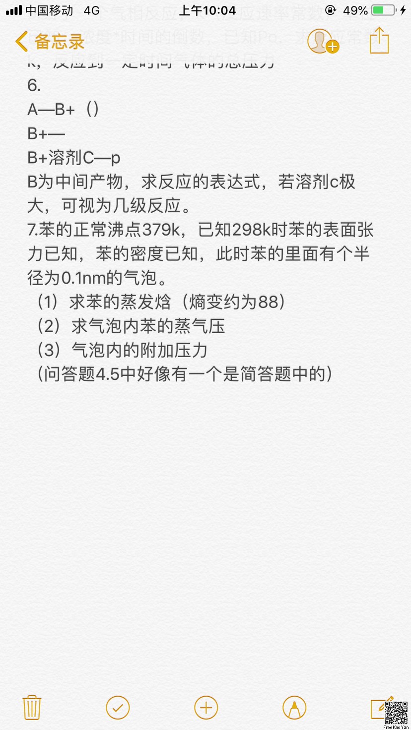 • 中科院中科大物理化学半岛在线注册复习笔记
