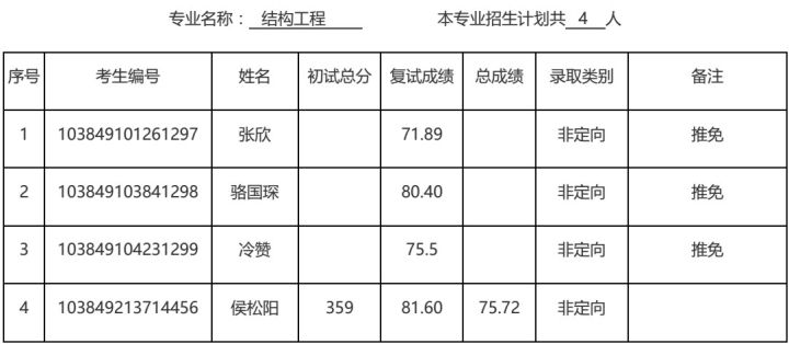 成绩总分=初试成绩÷5×60%+复试成绩(百分制)×40%