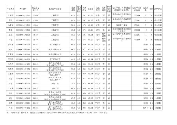 7. 2019年拟录取名单