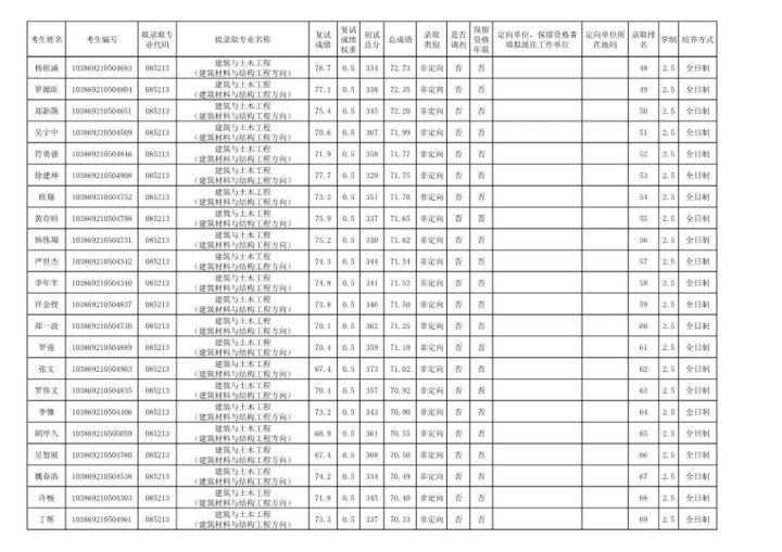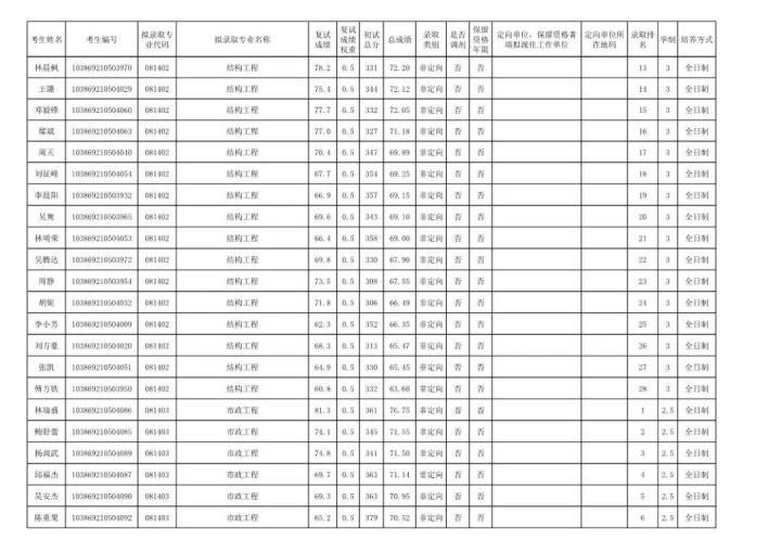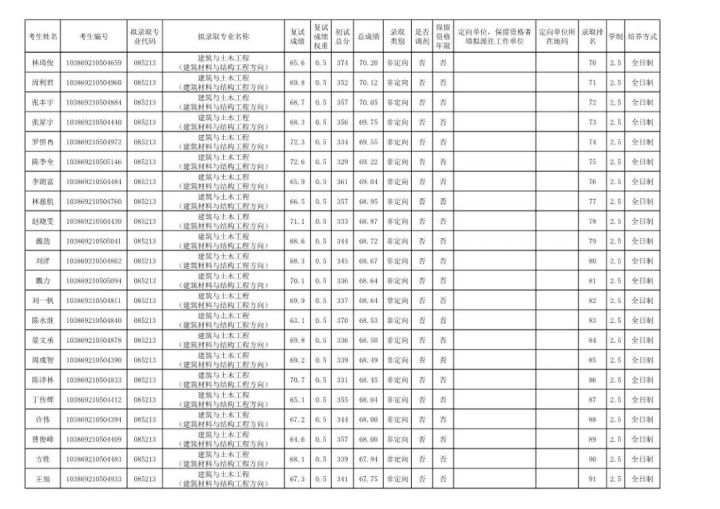 学硕:工程力学303;岩土305;结构322;市政311;防灾减灾307;桥梁312;交通安全322;水文学水资源355;水工结构276;港口海岸近海337。
