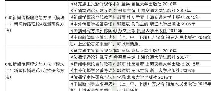 专硕19年取消了参考书目,不过根据出题方向和真题思路来分析,还是可以参考以前的书目在其基础上进行拓展,拓展内容多关注业界学术前沿,特别是上大老师自己的研究方向以及新闻传播热点,包括热点事件,热点名词,产生的新闻评论等等。