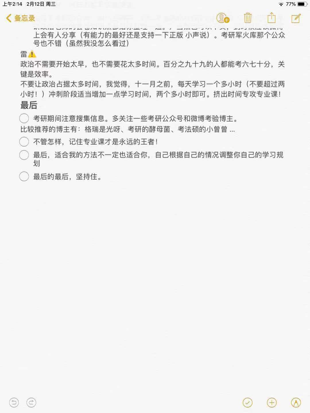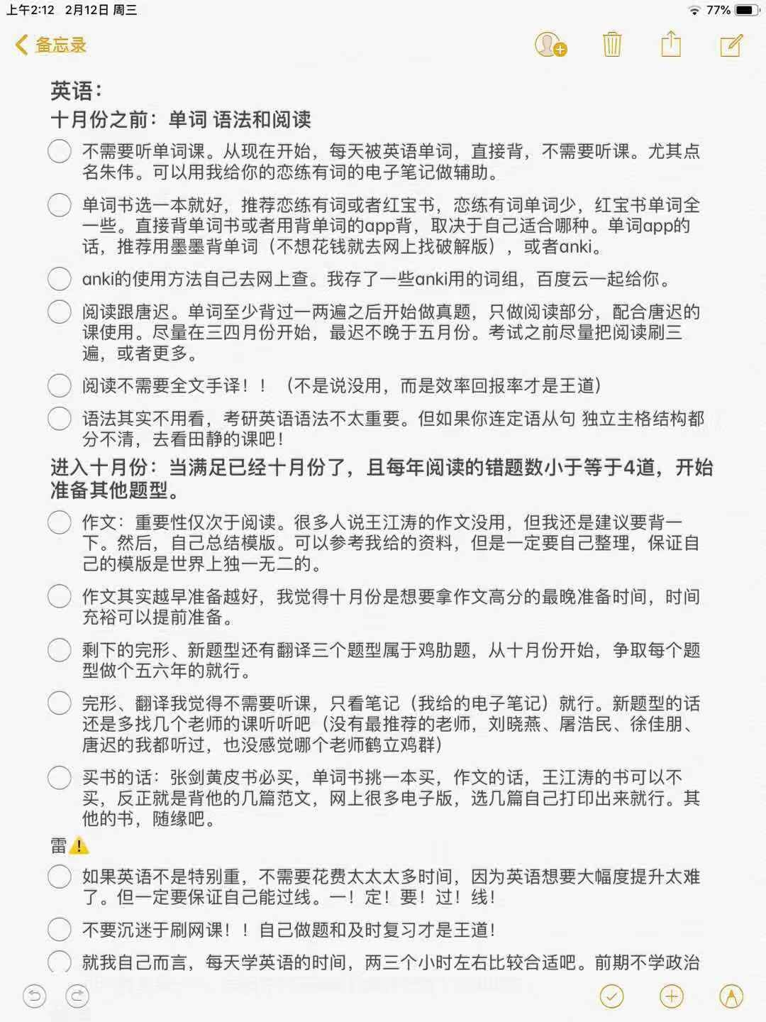 这是我之前为我自己的一位学妹写的英语和政治的,算是自己的心得。如果有想看的就随便看看。但经验并不绝对,按照自己的实际情况来就好。