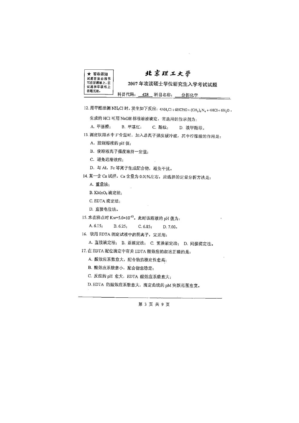 北京理工大学2007分析化学828半岛在线注册真题(3)