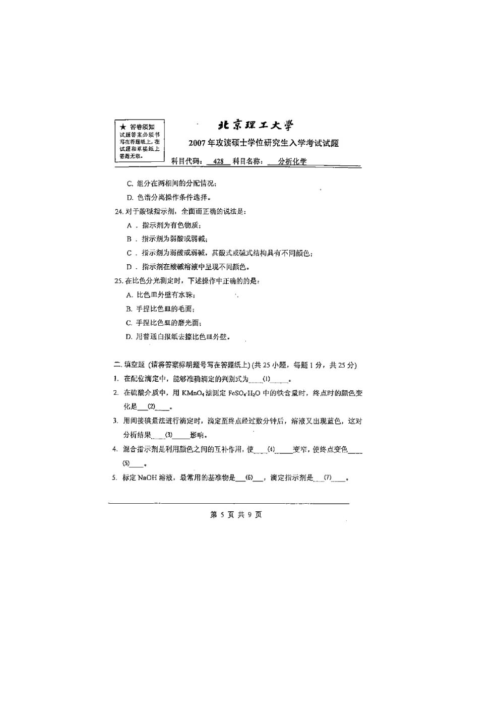 北京理工大学2007分析化学828半岛在线注册真题(5)