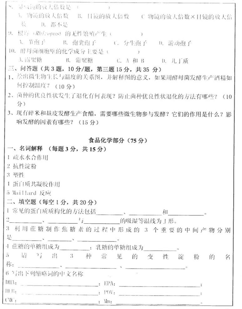 2008西南大学食品半岛在线注册专业课真题(食品化学与食品微生物学)(2)