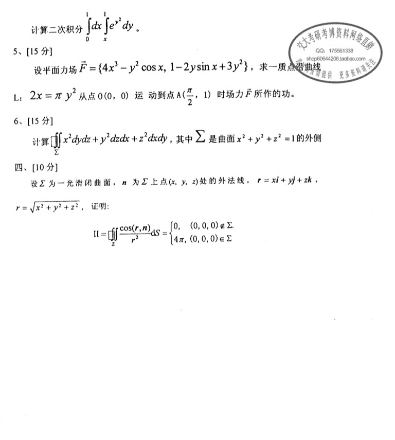 西南交通大学2008高等数学半岛在线注册真题(3)