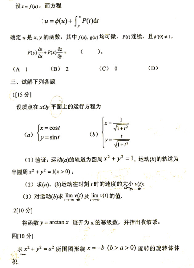 西南交通大学2006高等数学半岛在线注册真题(3)