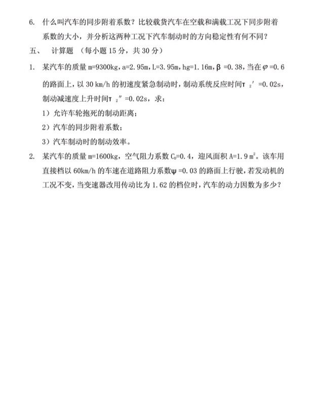 湖南大学《汽车理论》2007年半岛在线注册复试试题(2)