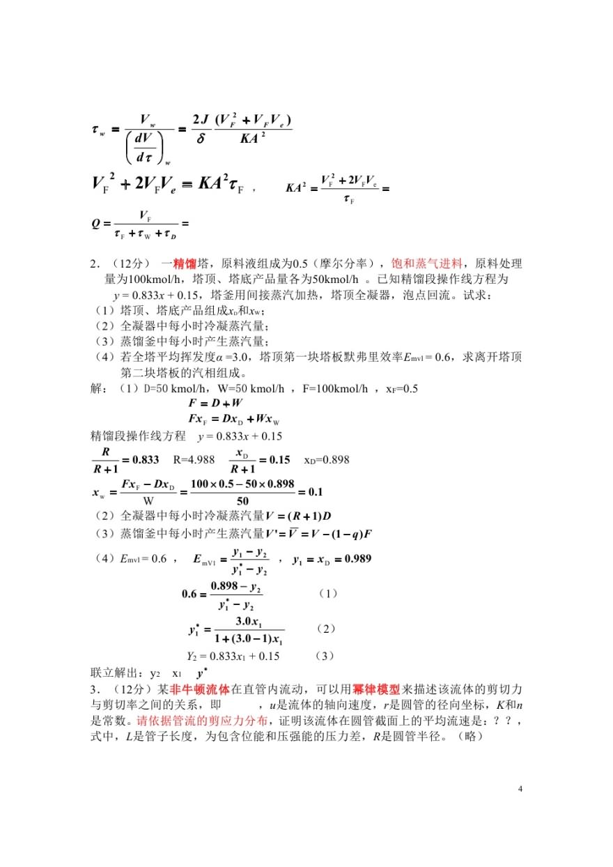 2007中国科学院研究生院化工原理半岛在线注册试题(解答)答案(4)