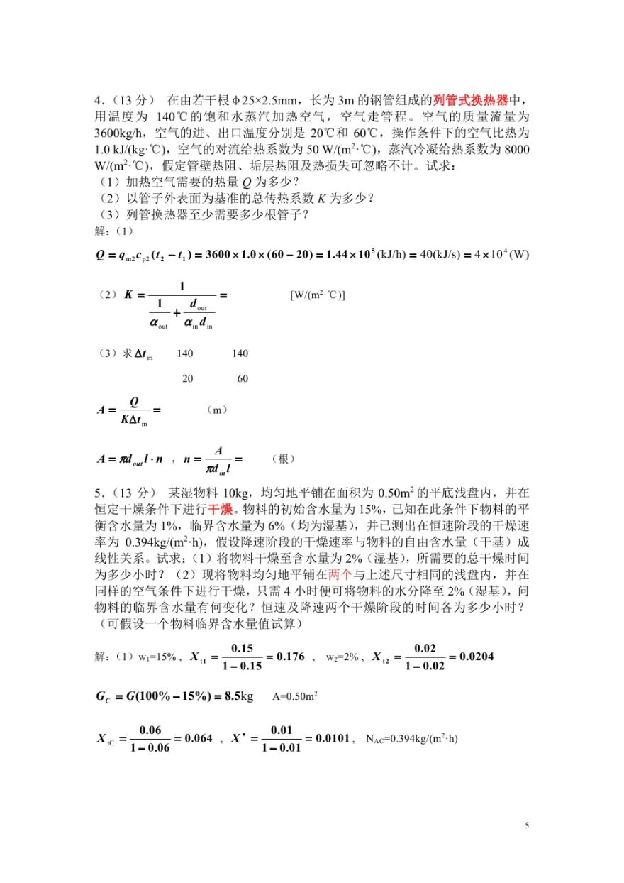 2007中国科学院研究生院化工原理半岛在线注册试题(解答)答案(5)