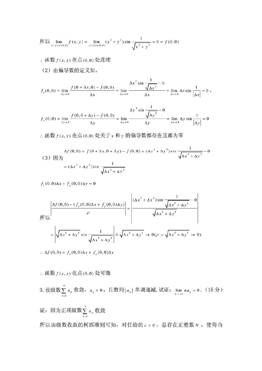西北大学2010年数学分析半岛在线注册真题(附答案)(2)