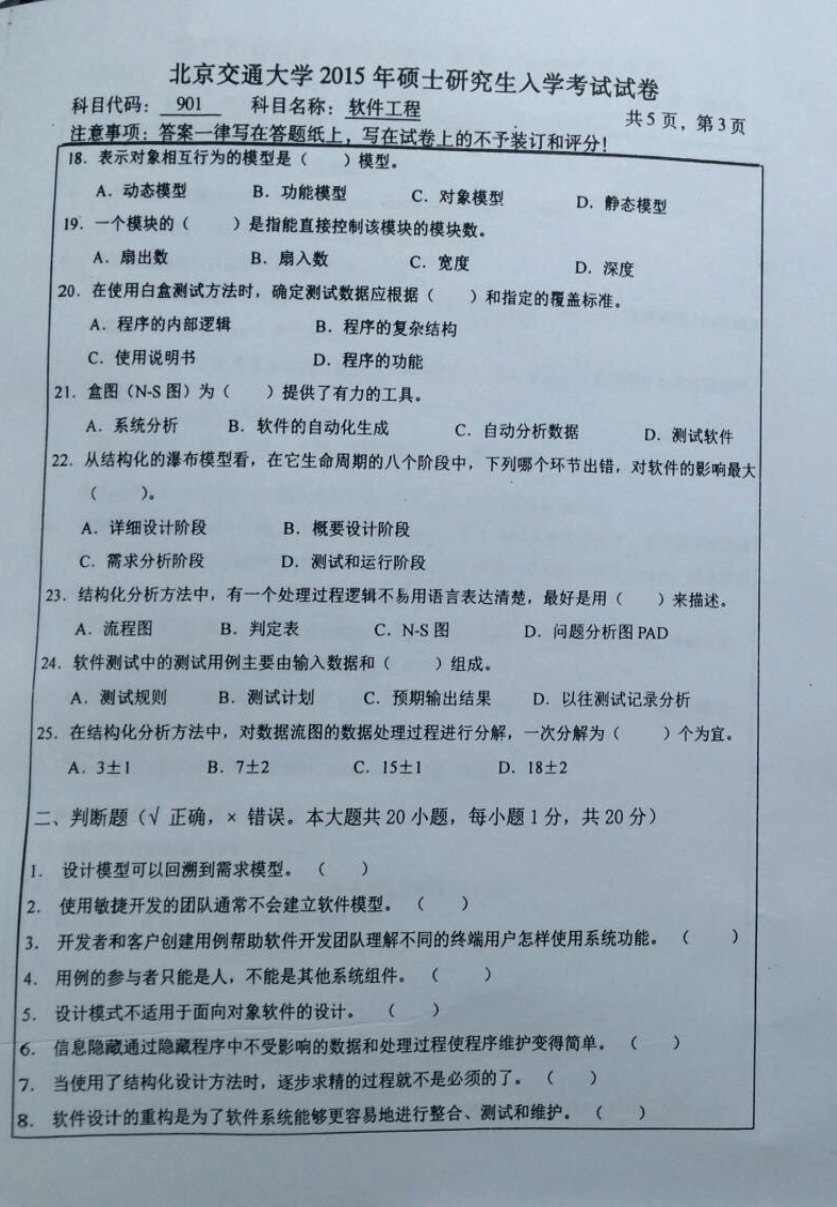 北京交通大学2015软件学院半岛在线注册901软件工程半岛在线注册真题(3)