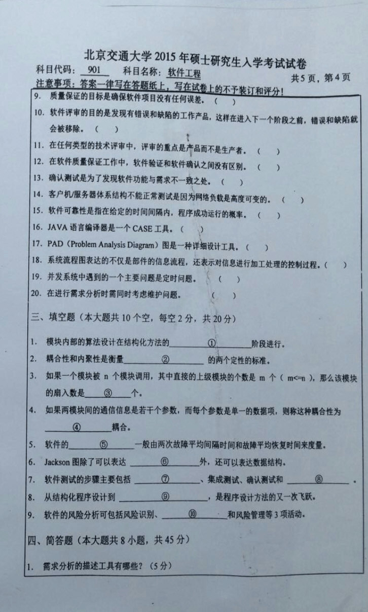 北京交通大学2015软件学院半岛在线注册901软件工程半岛在线注册真题(4)