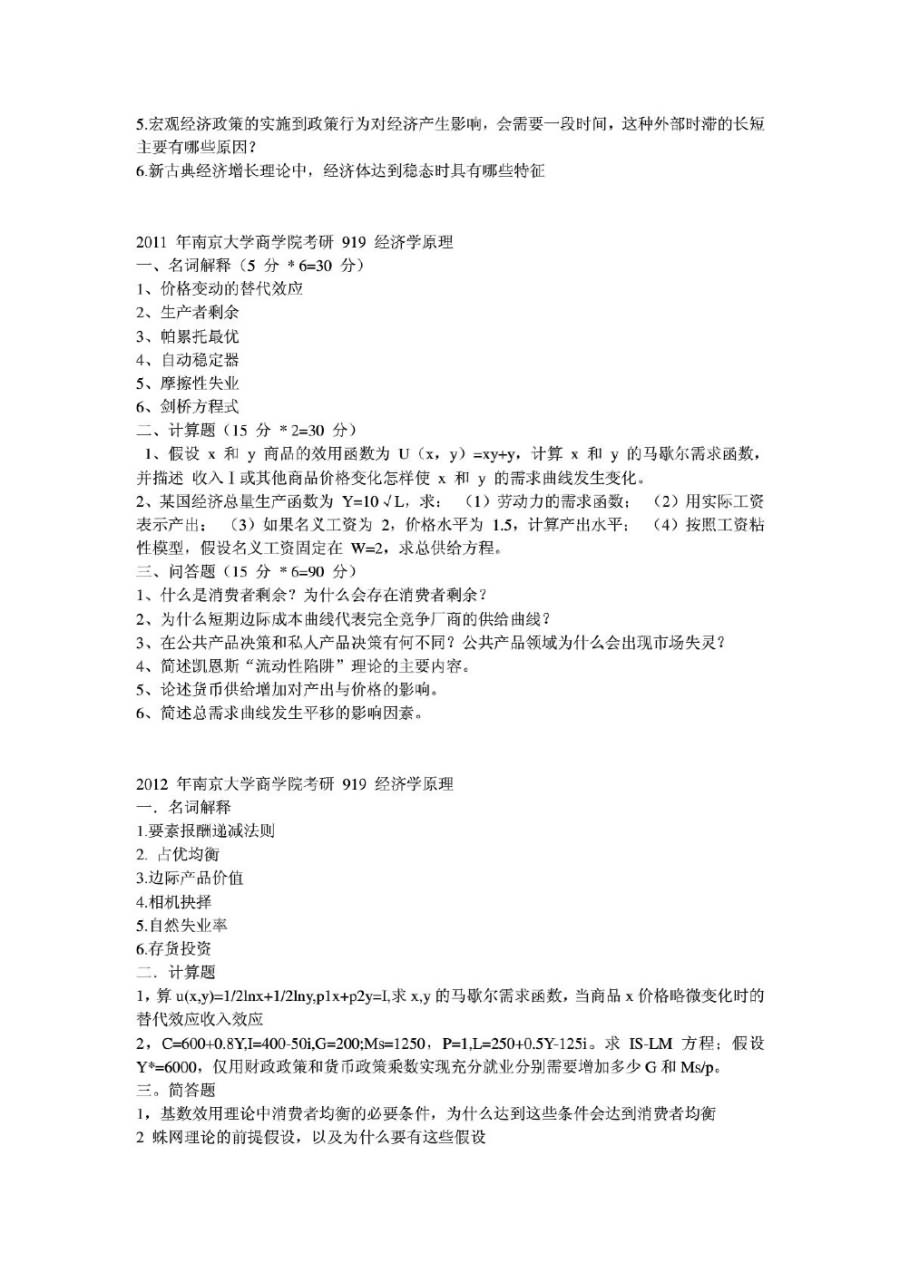 2013年南京大学919经济学原理半岛在线注册真题及详解