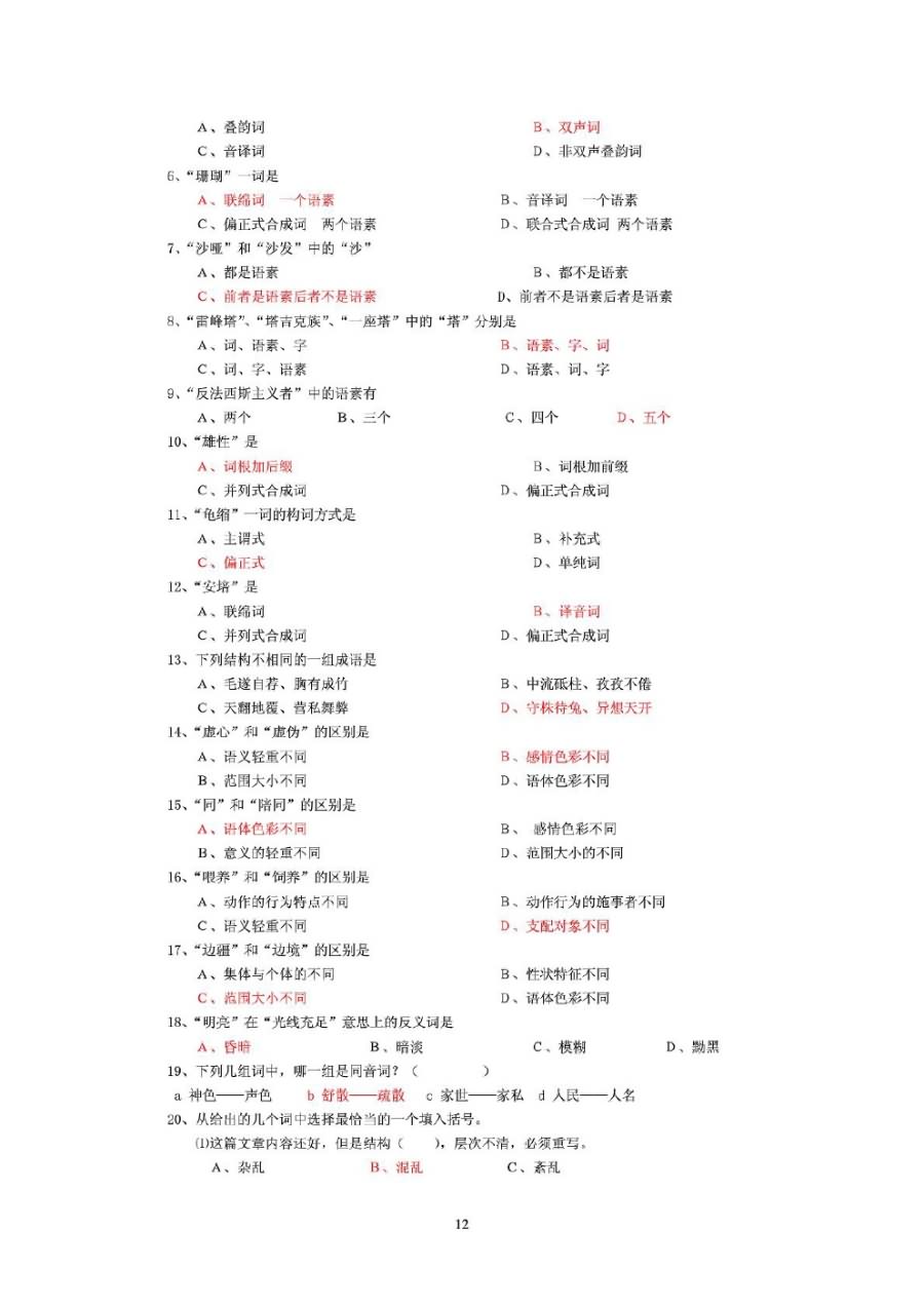 现代汉语半岛在线注册试题库答案(12)