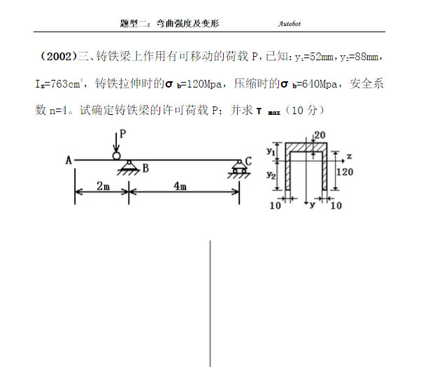 吉林大学半岛在线注册材料力学题型二:弯曲强度及变形(3)