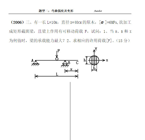 吉林大学半岛在线注册材料力学题型二:弯曲强度及变形(5)