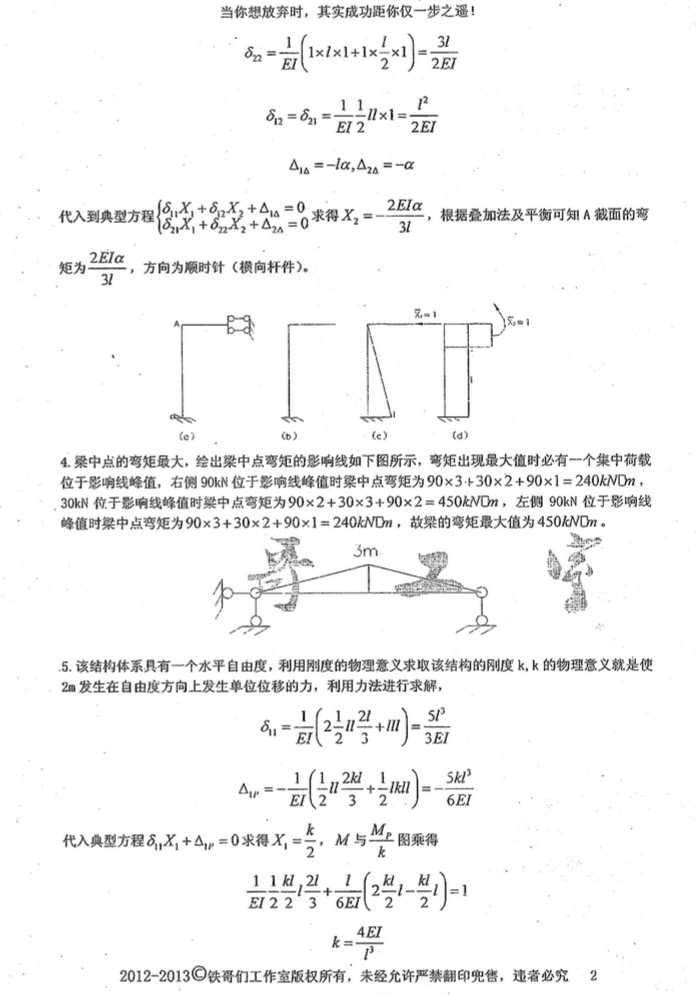 2012年天津大学结构力学研究生半岛在线注册试题—答案(2)