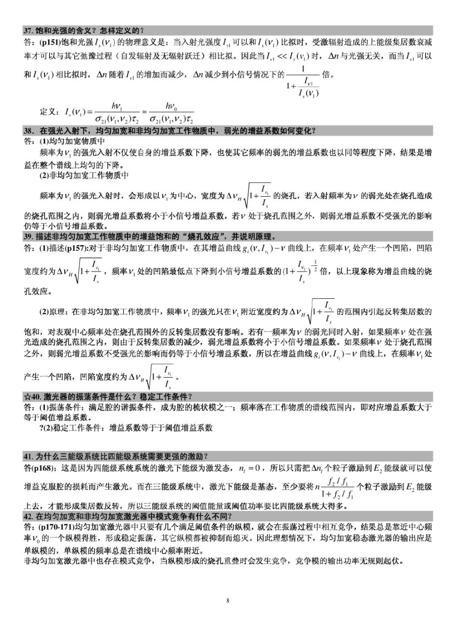 2015华中科技大学光学工程激光原理900真题回忆 一、简答题 1、△n 大于0,激光器是否能够产生自激振荡? 2、光学谐振腔的结构和作用 3、共焦腔与一般腔的等价性 4、均匀加宽与非均匀加宽的特点 5、连续激光器从开始振荡到产生稳定输出增益系数的变化情况 6、光学模式以及横模和纵模 二、三能级四能级的本质区别,以及 ...专业课半岛在线注册资料 本站小编 半岛在线注册 2015-12-17内蒙古大学激光原理与技术课后题