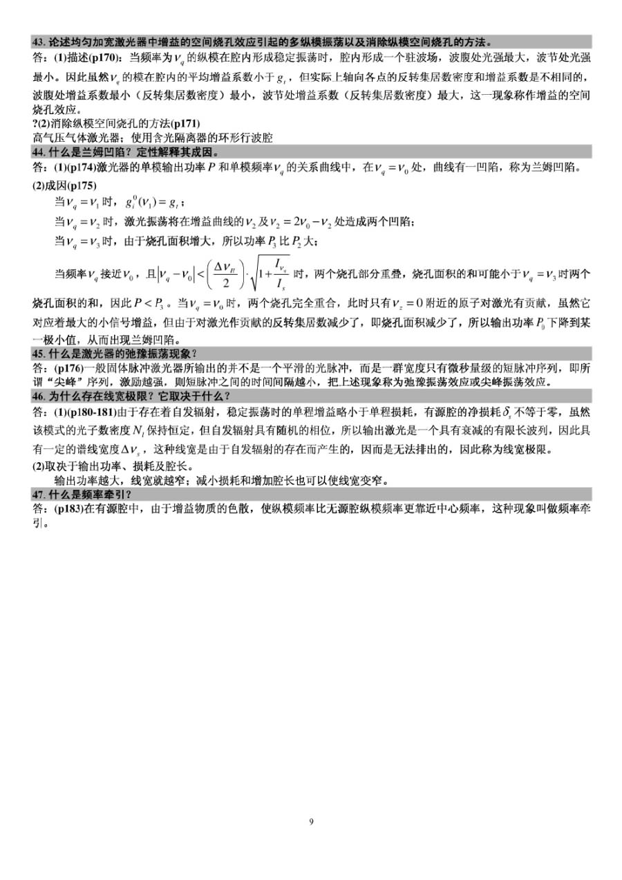2015华中科技大学光学工程激光原理900真题回忆 一、简答题 1、△n 大于0,激光器是否能够产生自激振荡? 2、光学谐振腔的结构和作用 3、共焦腔与一般腔的等价性 4、均匀加宽与非均匀加宽的特点 5、连续激光器从开始振荡到产生稳定输出增益系数的变化情况 6、光学模式以及横模和纵模 二、三能级四能级的本质区别,以及 ...专业课半岛在线注册资料 本站小编 半岛在线注册 2015-12-17内蒙古大学激光原理与技术课后题