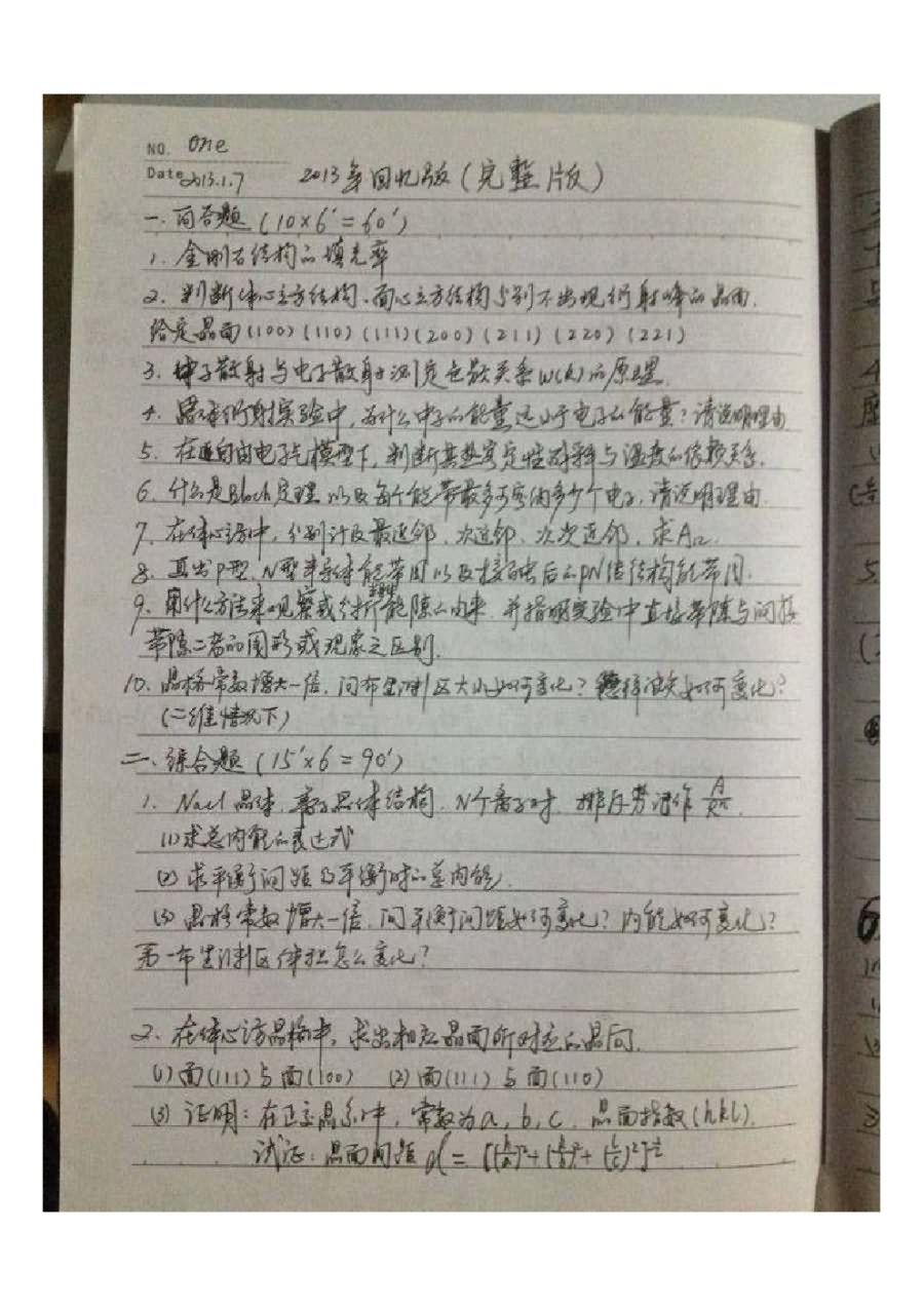 2.简述德拜模型和爱因斯坦声子模型 p-n结原理 Si太阳能电池原理 ...