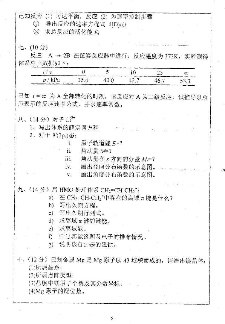 西北大学物理化学2001-2005年半岛在线注册真题(26)