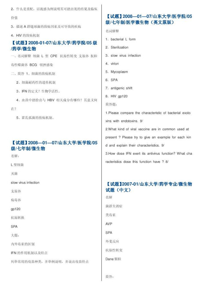 • 2006-2008年中国药科大学半岛在线注册微生物复试试题