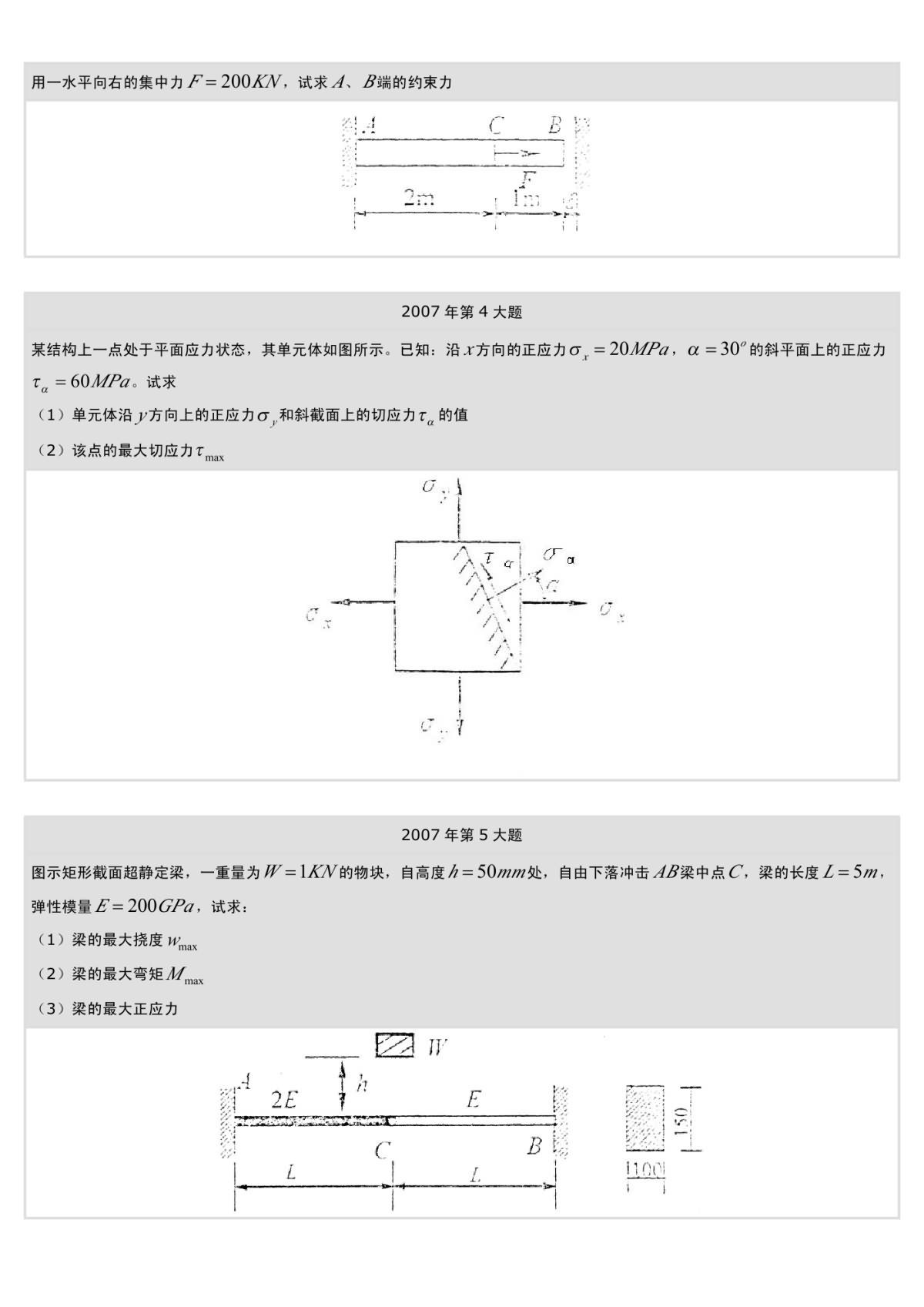 2004-2011年河海大学材料力学半岛在线注册真题汇总(11)