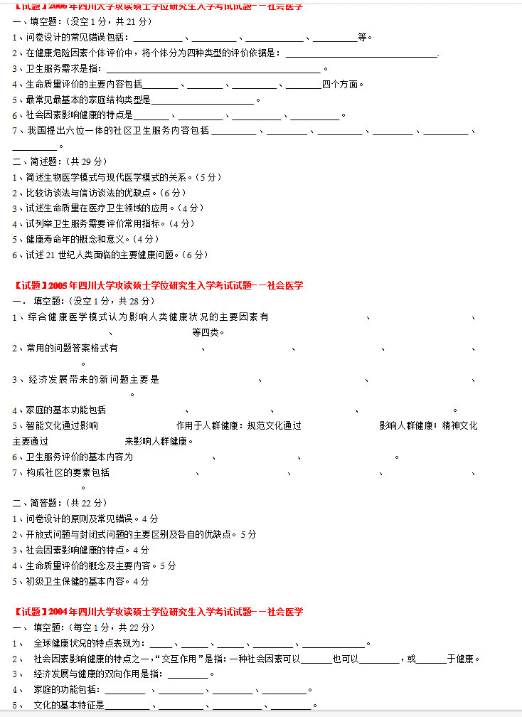 四川大学华西公共卫生学院半岛在线注册历年社会医学真题整理(4)