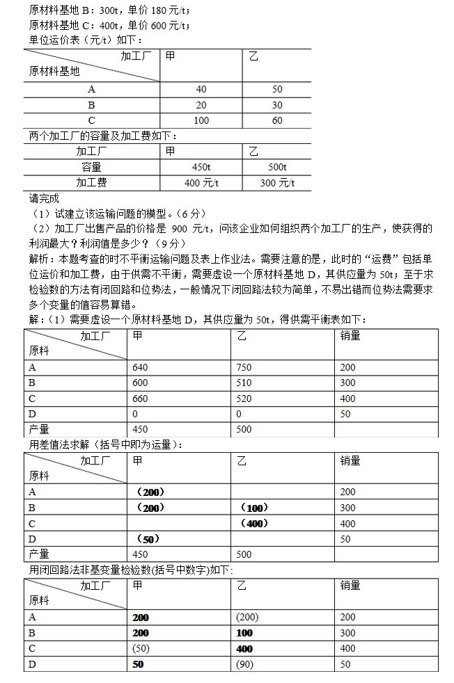 2015年北京交通大学管理运筹学半岛在线注册真题 一单纯形法求解,并且利用灵敏度分析计算,共计35分。 二运输问题,先列运输模型,再化为对偶问题的模型,之后再求解,还有一个小题是改了某个运价,问是否影响结果?可能是20分 三指派问题,非标准型的,大概是由四个任务,三个人,有两个人可以分别完成两个任务,第一题是化为标 ...专业课半岛在线注册资料 本站小编 网络资源 2015-07-13北理工管理运筹学半岛在线注册全年复习计划