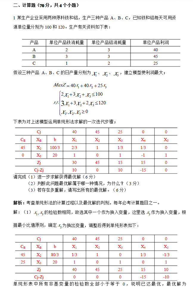 2015年北京交通大学管理运筹学半岛在线注册真题 一单纯形法求解,并且利用灵敏度分析计算,共计35分。 二运输问题,先列运输模型,再化为对偶问题的模型,之后再求解,还有一个小题是改了某个运价,问是否影响结果?可能是20分 三指派问题,非标准型的,大概是由四个任务,三个人,有两个人可以分别完成两个任务,第一题是化为标 ...专业课半岛在线注册资料 本站小编 网络资源 2015-07-13北理工管理运筹学半岛在线注册全年复习计划
