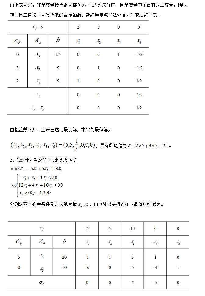 2015年北京交通大学管理运筹学半岛在线注册真题 一单纯形法求解,并且利用灵敏度分析计算,共计35分。 二运输问题,先列运输模型,再化为对偶问题的模型,之后再求解,还有一个小题是改了某个运价,问是否影响结果?可能是20分 三指派问题,非标准型的,大概是由四个任务,三个人,有两个人可以分别完成两个任务,第一题是化为标 ...专业课半岛在线注册资料 本站小编 网络资源 2015-07-13北理工管理运筹学半岛在线注册全年复习计划