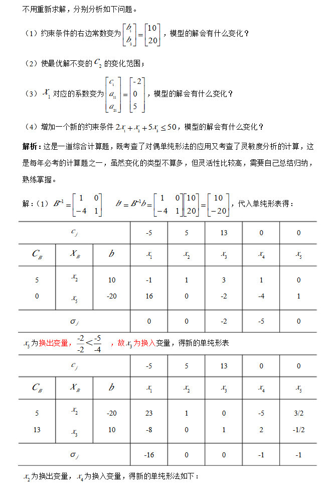 2015年北京交通大学管理运筹学半岛在线注册真题 一单纯形法求解,并且利用灵敏度分析计算,共计35分。 二运输问题,先列运输模型,再化为对偶问题的模型,之后再求解,还有一个小题是改了某个运价,问是否影响结果?可能是20分 三指派问题,非标准型的,大概是由四个任务,三个人,有两个人可以分别完成两个任务,第一题是化为标 ...专业课半岛在线注册资料 本站小编 网络资源 2015-07-13北理工管理运筹学半岛在线注册全年复习计划