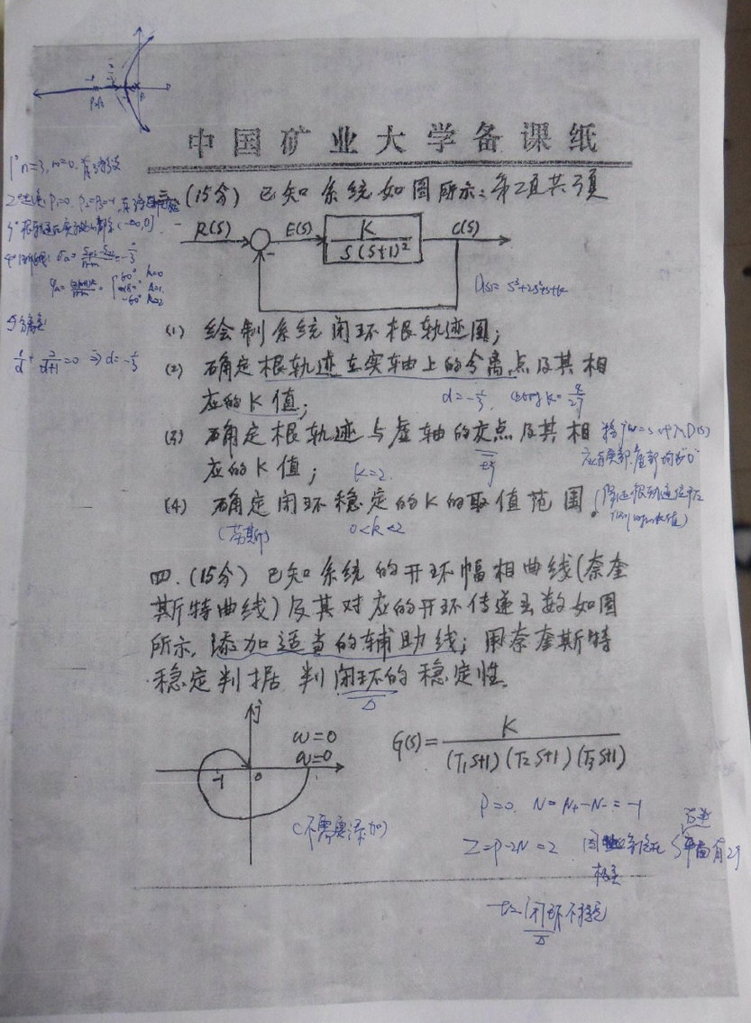 中国矿业大学2006-2009年自动控制原理半岛在线注册复试题答案参考(2)